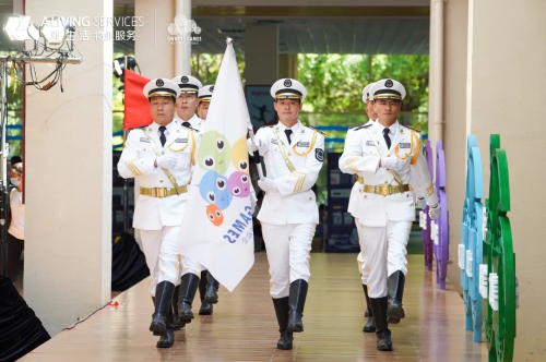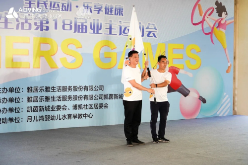 在運(yùn)動(dòng)員與裁判員代表分別宣誓后,雅生活華南區(qū)域中山片區(qū)總經(jīng)理鐘錦繡作為物業(yè)代表為運(yùn)動(dòng)員授旗。